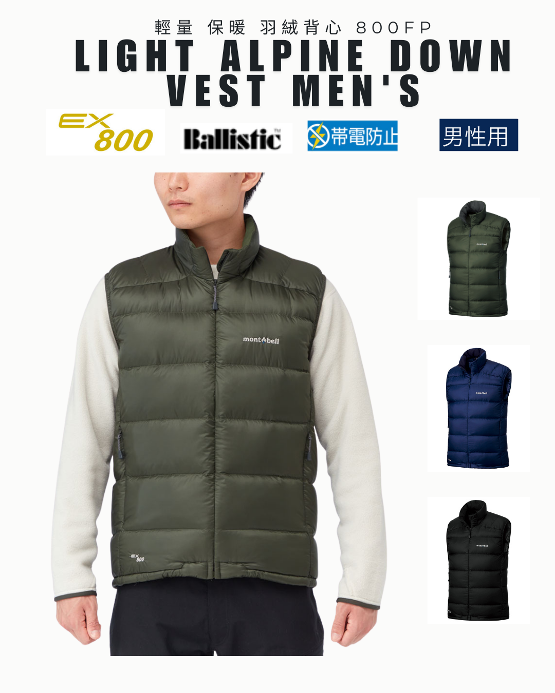 代購【 2025AW 日本 直送 mont-bell 男裝 800FP 輕便 羽絨背心 | superior down vest men 800FP 】