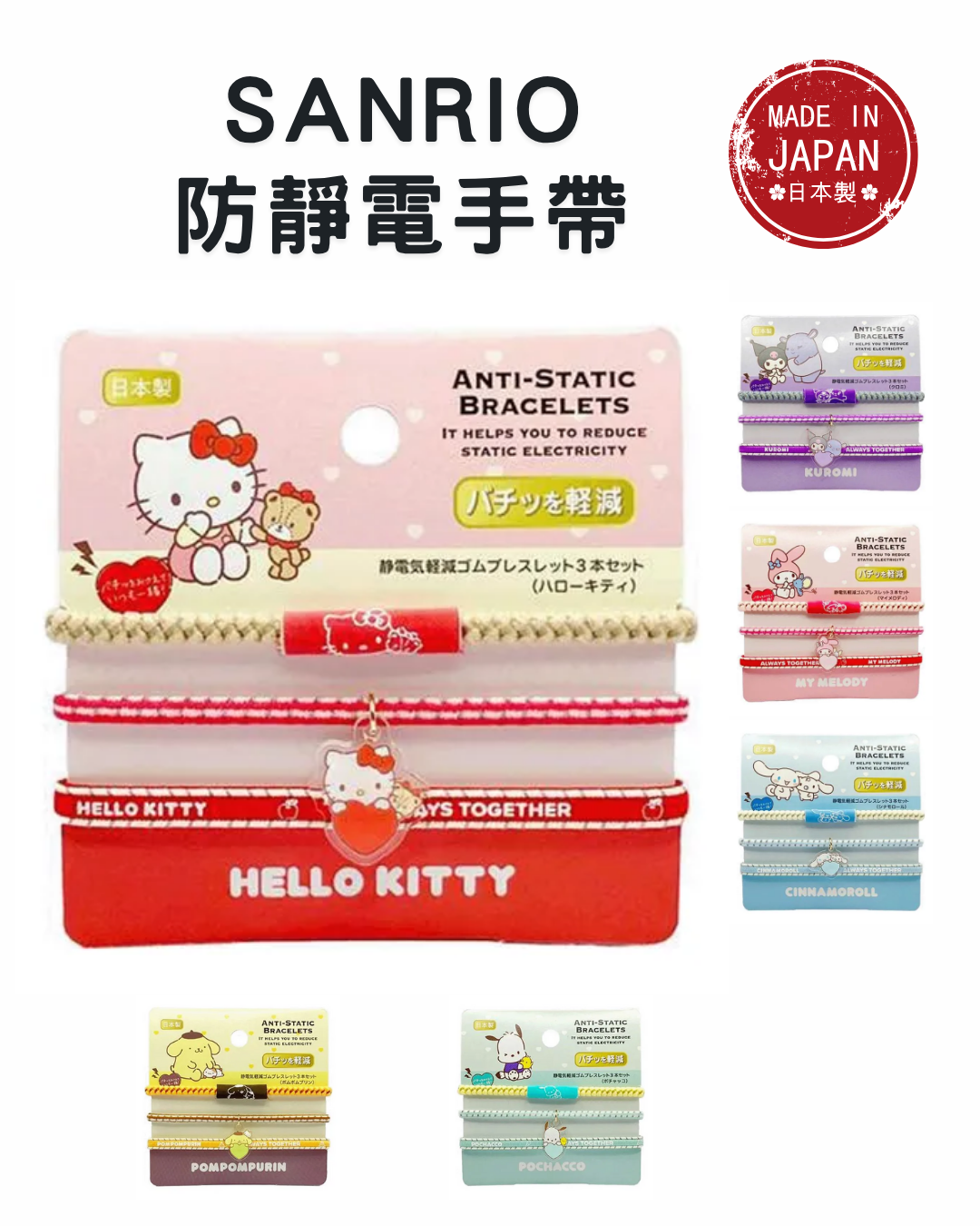 代購【 2025AW 日本 直送 日本製 Sanrio 防靜電手帶 Anti-Static Bracelets 防靜電手帶 】